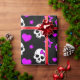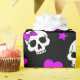 Cabeças de esqueleto na moda com corações violetas & estrelas
