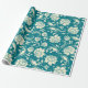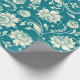Papel De Presente Creme leve e Damascos Florais Verde-Teal