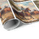 Este trabalho de arte clássico tem um vaqueiro em um gado de pasto de cavalos.