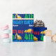 Legal papel azul de embrulho de veículos de construção para uma criança que gosta de carros e caminhões. Adicione o nome do seu filho abaixo do bonitinho escavador e jogue design de caminhão para uma criança que vire quatro pessoas que gosta de veículos. Adorável pacote de presente personalizado de 4 anos.