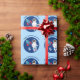 Legal papel de embrulho no espaço exterior personalizável para uma criança que foguete naves e planetas. Adicione o nome e a idade do seu filho em azul e branco para personalizar o seu presente para um rapaz que gosta de astronautas que flutuam ao lado de naves espaciais.