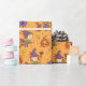 Um Papel De Molho De Laranja Para O Halloween, Patterado Em Pequenas Bruxas E Bombeiros