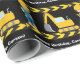 Legal papel de embrulho de festa de aniversário escavadora de construção para uma criança que adora veículos de construção amarelos em preto e amarelo. Design de veículo divertido para um menino que ama carros e caminhões. Personalize com o nome do seu filho e FELIZ ANIVERSÁRIO em branco sob a fita de precaução em preto e amarelo.