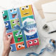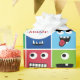 Crianças Personalizadas Padrão De Monstro Feliz Festa De Aniversário Adicione Papel De Embalagem De Idade. Rostos de monstro coloridos e engraçados com um e dois olhos no padrão quadrado brilhante. Quadrados vermelhos, laranja, amarelo, verde, azul e roxo em um padrão repetido. Adicionar nome e idade em círculos brancos. Material de festa de monstro divertido.