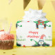 Este presente de Natal festivo apresenta uma imagem fofa de um pinguim de desenho animado numa coroa de Natal verde com um arco vermelho. A imagem é colocada sobre um fundo branco, com texto personalizável em vermelho que diz Feliz feriado! e sua própria personalização em verde. Pode fazê-lo dizer o que quiser. Festivo, único e colorido! As crianças vão adorar!