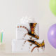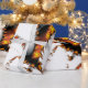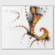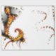 Um design de abstrato de arte de um mítico dragão voador em vermelho, ouro e preto, também deixando uma imagem de seu percurso de voo.