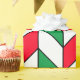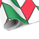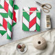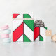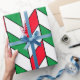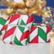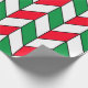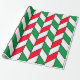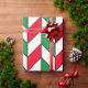 Este papel de embrulho apresenta um design de fêmur natalino com um padrão geométrico de herança em branco, vermelho e verde com linhas pretas.