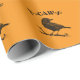 Trata-se de uma ilustração monocromática, profissionalmente trabalhada, que apresenta um corvo pregado num ramo de árvore, renderizado com uma textura distinta de meio tom para evocar uma estética de safra. Posicionado de forma destacada acima do pássaro está o texto ousado e estilizado "F-CAW-F", que oferece uma reviravolta humorística que complementa a vibração gótica e potencialmente assustadora ou a vibração do tema do Dia das Bruxas. A composição geral combina elementos escuros e de estilo de tatuagem vintage com o design retro gráfico.