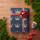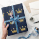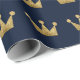 Papel De Presente Crowns Glitter Dourado Graduação Lux Marinho Azul