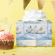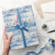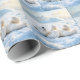 Um filhote de urso polar brincalhão deita-se nas costas de uma paisagem Ártica nevada cercada por flocos de neve suavemente caindo.