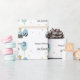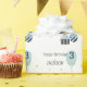 Este gráfico branco de cupcakes e um balão azul é um presente perfeito para presentes de qualquer menino. É acentuado com estrelas douradas falsas em fundo branco e texto personalizado para o nome e a idade do aniversariante.