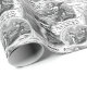 Elegante padrão preto e branco de dois cupídeos amorosos perseguindo uns aos outros através de uma paisagem pastoral. Antigos textos franceses e italianos sobre a natureza do amor no fundo.