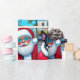 Cute Boston Terrier Encontra a Cláusula Santa. Design de pop de de arte fascinante. Tenha um cachorro que tenha ido bem no Natal.