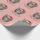 Papel De Presente Custom Cute Christmas Cat with Santa Hat