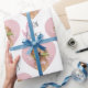 Make every gift extra special with this personalized dog photo wrapping paper for Mom. Featuring a sweet repeating heart pattern and your custom pet photo, this gift wrap is perfect for celebrating the love between Mom and her furry best friend.