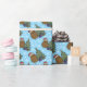 A cute Christmas wrapping paper featuring a cartoon potato in a whimsical Christmas scene. The potato is in front of a Christmas tree that has lights attached and a star on top. Ideal for wrapping your holiday gifts.