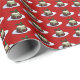 A Christmas pudding pattern on wrapping paper. A busy, festive pattern featuring my original drawing in a retro, pixel art style, of a pudding, drizzled in brandy sauce and decorated with holly and berries, sitting on a white plate.