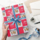 This Christmas gift wrapping paper roll features three adorable golden retriever puppies in a winter snow scene in a watercolor style. The gift wrap is patterned with the puppies picture in a check design, with a festive red background. Ideal for dog owners and fellow animal lovers, the gift wrap can be personalized with a name or other text for the finishing touch.