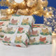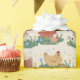 A playful pixel art pattern featuring stylized chickens standing on small grassy patches with tiny decorative elements scattered around