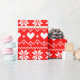 Cute fairisle heart pattern wrapping paper that can be personalized with your own text. The design features a white pattern of hearts and snowflakes and other geometric shapes on a bright red background. Simple and minimalist Fair Isle pixel pattern in a traditional Nordic style design. Ideal for winter holidays like Christmas, Valentine's Day or winter birthdays, anniversaries.