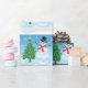 Bonito boneco de neve com árvore de Natal e flocos de neve.