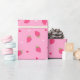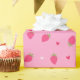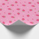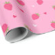 Cute wrapping paper for gifts on Valentine's day with strawberries and hearts pattern. Pink and red colors.
