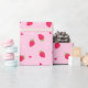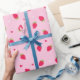 Cute wrapping paper for gifts on Valentine's day with strawberries and hearts pattern. Pink colors.