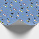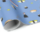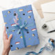 Este papel de embrulho cômico apresenta um fundo azul com ilustrações de um conjunto de sushi (nigiri e maki) e seus acompanhantes (paus, molho de soja e wasabi). Papel perfeito para dar presentes aos seus amigos e familiares que amam sushi e comida japonesa e para embrulhar os presentes relacionados com sushi.