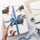 Um cão Dachshund em um Pai Natal... enrolando design de presente de Natal. Brilhe sua temporada de férias com nosso papel festivo de embrulho de cachorro apresentando um adorável Dachshund vestido com um chapéu de Santa. Este design alegre adiciona um toque divertido aos presentes de Natal.