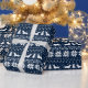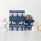 Padrão do estilo da camisola de Natal azul e branco de meia-noite com silhuetas de Dachshund. Brilhar o feriado de alguém com um presente especial embrulhado em um papel de embrulho com molas de salsicha fofo. Confira o Doodle World da Jenn para um presente de Doxie Xmas ainda mais festivo e presentes divertidos para amantes de cachorros.