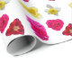 A Roll of wrapping paper, 29-inch x 6 feet,=optional= Matte Wrapping Paper, =optional ,with a picture of a Yellow Tulip, White and yellow Daffodil, Triple Pink Roses, Pink Rose#4, and a Red Tulip, reduced or enlarged in size, with the background removed, with a White background added all over, = (pictures by P.J.M.)= all over the wrapping paper.
