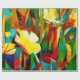 Daffodils. Abstract floral composition in a cubist style. Executed in oil on canvas with elements of pastel painting.