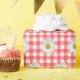 Papel De Presente Daisies Brancas em Gingham Vermelho e Branco