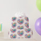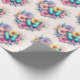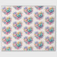 Wrapping paper with a beautiful illustration. A heart-shaped bouquet of flowers in pastel blue, green, purple and yellow. With a lovely blue butterfly hovering in front.