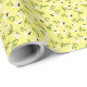 This cheerful wrapping paper is covered in a lively pattern of white daisies with black centers, radiating warmth and charm. The daisies are scattered playfully across the surface—some large and bold, others smaller and delicate—creating a sense of movement and lightness. The background is a soft buttery yellow enhancing the bright, joyful feel.