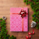 Papel De Presente Damasco de Natal Moderno | Laranja rosa