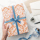 Papel floral de embrulho floral vitoriano de cor laranja e branca.