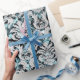 Papel De Presente Damask Glitter Teal Silver Sequência Real