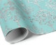 Papel De Presente Damask Silver Cinza Aqua Blu Real Metálico