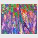 Representação abstrato de árvores com rajadas de folhas coloridas, misturando criatividade e natureza em um visual impressionante