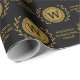nome da empresa monograma profissional e elegante de negócios envolto em fundo preto e dourado, Traga sofisticação e estilo atemporal para a sua embalagem com nossa coleção de Papel de Presente com Monograma de Grinalda Elegante. Projetado com um monograma personalizável cercado por uma grinalda de loureiro refinada, este papel de embrulho versátil é perfeito para uso profissional e de boutique. Disponível em vários temas de cores cuidadosamente selecionados, cada variação define um clima diferente para combinar com a identidade da sua marca ou necessidades sazonais luxo Corporativo, fundo azul marinho.
