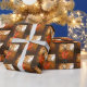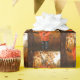 Veado de Buck na floresta do outono com espingarda vestida de laranja de caçador e calças de camuflagem
