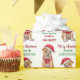 O padrão neste papel festivo de embrulho de Natal é de um Bulldog giro vestindo um chapéu de Papai Noel vermelho e branco e um arco vermelho. Ele parece um pouco desafiador, mas definitivamente adorável! A imagem é repetida na superfície, com texto vermelho e verde que diz "Caros Papais noeis, Definam BATALHO". Sua própria saudação e assinatura personalizadas está em vermelho e verde, também.