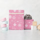 Flocos de neve em tons de rosa e branco dançando sobre este papel de embrulho festivo. Entre os flocos estão as palavras: "Deixe-o nevar!". Também disponível em outras cores.