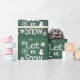 O papel de embrulho super fofo tem um design verde de linho com falso, com flocos de neve brancos e as palavras "Deixe-o nevar" nele. Há também um bonitinho bonitinho na design.