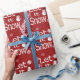 O papel de embrulho super fofo tem um design de linho vermelho, com flocos de neve brancos e as palavras "Deixe-o nevar" nele. Há também um bonitinho bonitinho na design.