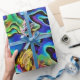 Este belo papel de embrulho pode ser usado em qualquer ocasião. É um padrão surpreendente de concha de abalone iridescente. Há rochas de tons de azul escuro passando para azul claro e verde, e também tons de laranja amarelo. Faz-me lembrar o fogo e o gelo! Não importa do que te lembre, é definitivamente um design muito impressionante.