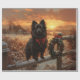 Capture a beleza serena do inverno com esta design rústica apresentando um charmoso cão Schipperke contra um incrível pano de fundo do pôr do sol. Perfeito por enviar desejos quentes de férias ou por adicionar um toque de charme sazonal à sua coleção, esta peça evoca as vibrações confortáveis e pacíficas da estação.
