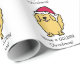 Este papel de envolvimento do feriado caracteriza um desenho dos desenhos animados de um cão do golden retriever que esteja vestindo um chapéu vermelho do papai noel. O texto lê, "tem um Natal DOURADO!"