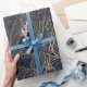 Papel De Presente Design Botânico da Dourada Folhagem Azul Moderna